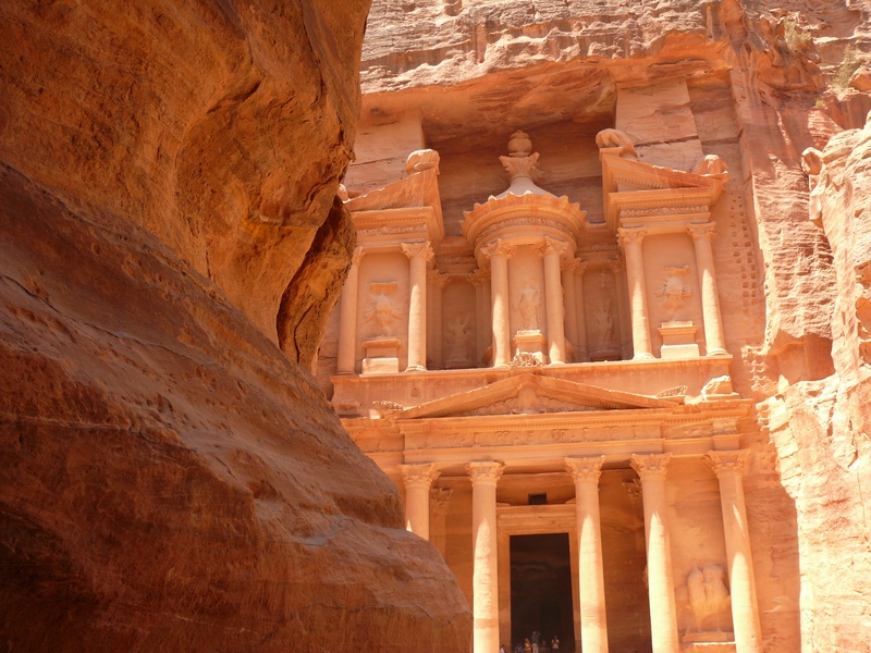 Die Felsenstadt Petra liegt gut versteckt – und strategisch günstig. Betretbar nur über einen Gebirgspfad oder durch eine 1,5 Kilometer lange und bis zu 200 Meter tiefe Felsschlucht, an ihrer engsten Stelle nur zwei Meter breit, kreuzten sich hier die Karawanenwege.